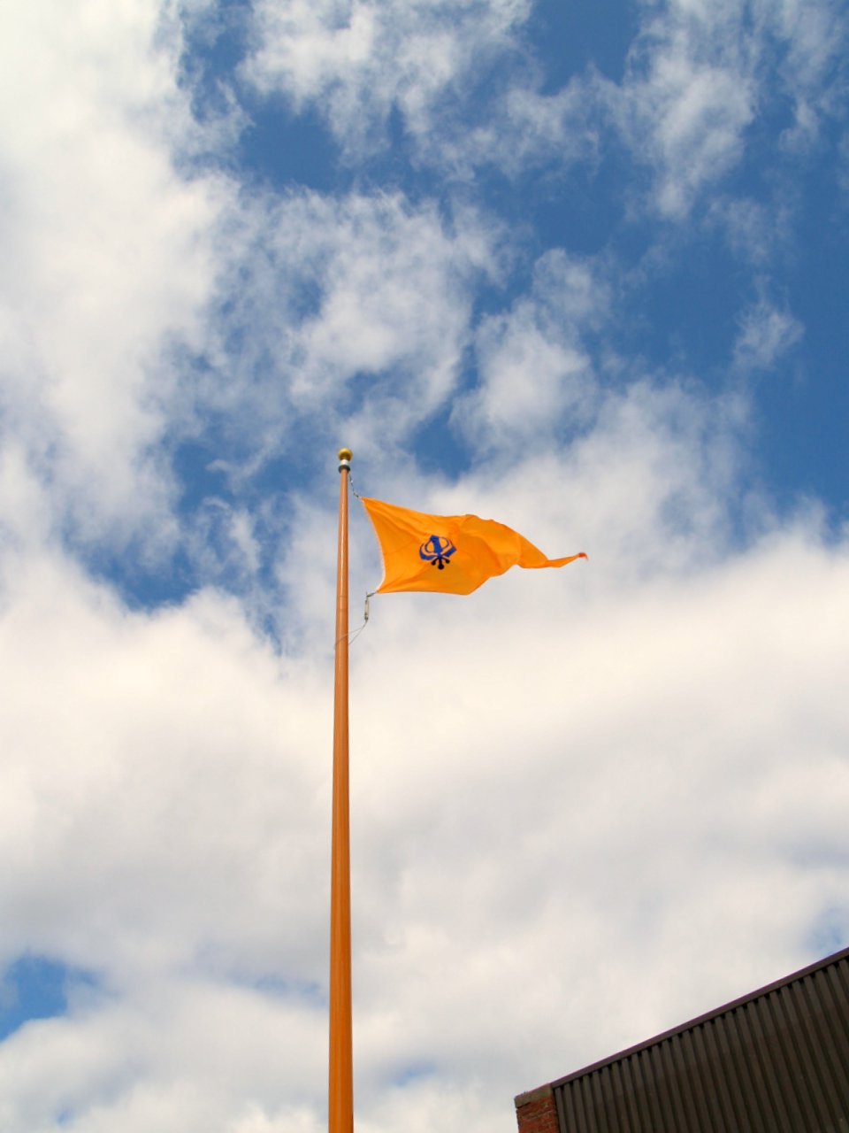 Nishan Sahib is visible on the right side just after crossing Harvard Street.